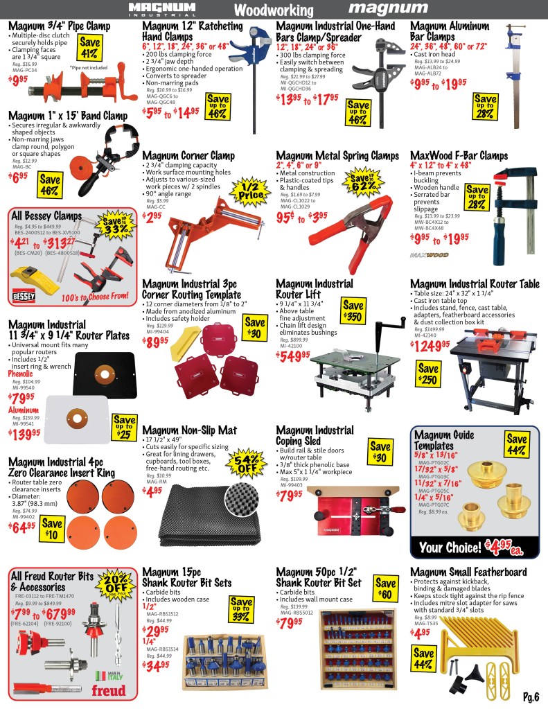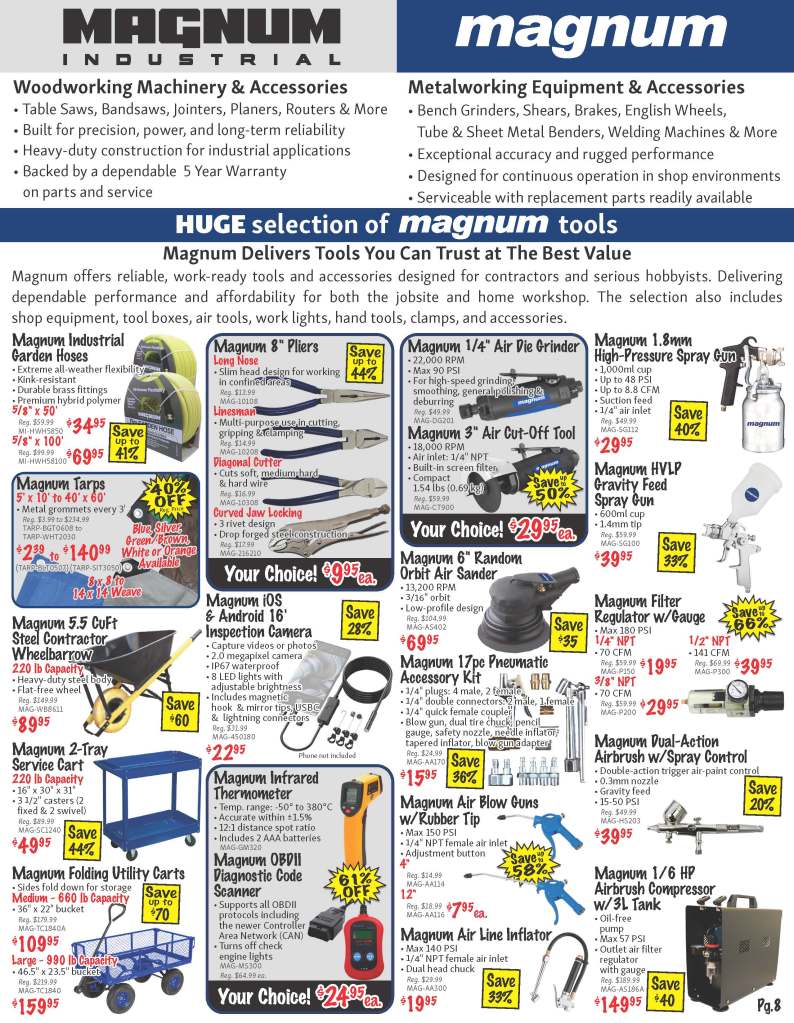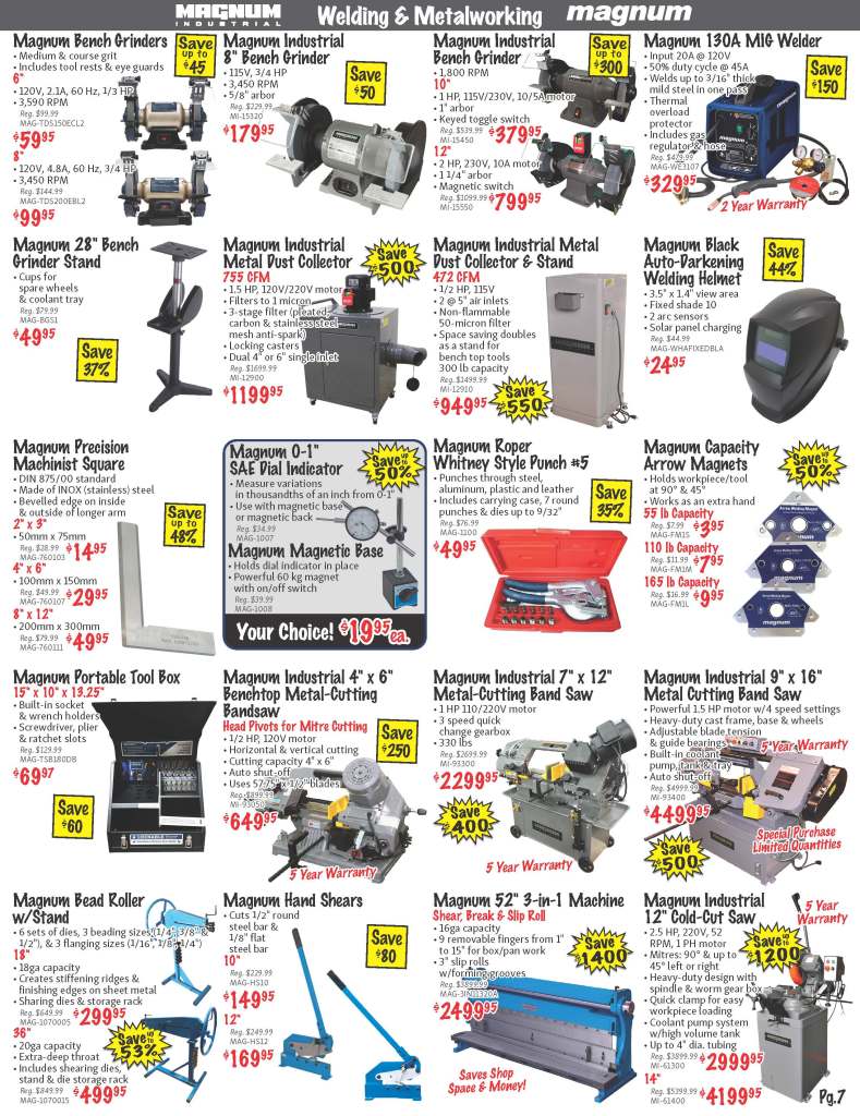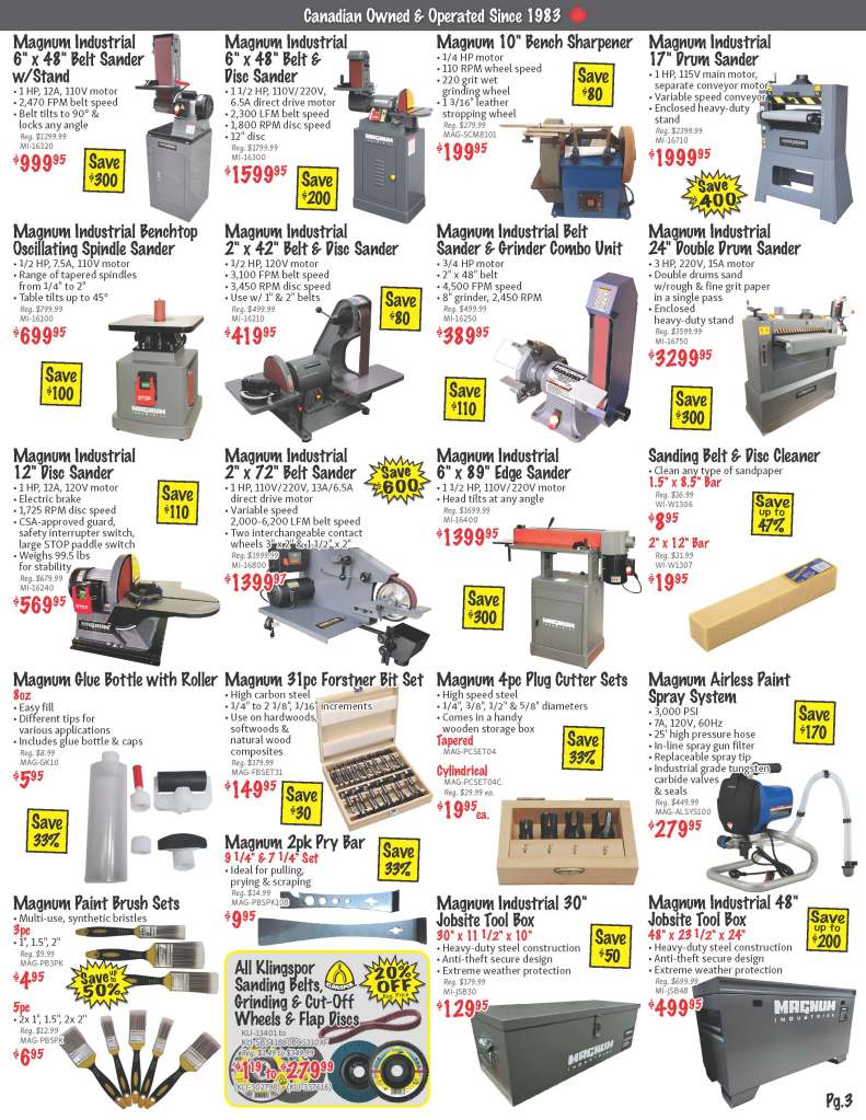 Shop our monthly 48 page flyer for savings and hot deals in all departments! Power Tools, Woodworking, Air Tools, Welding, Construction, Hand Tools, Construction, Safety PPE and much more! Save with extra discounts during our monthly 3-day sale!